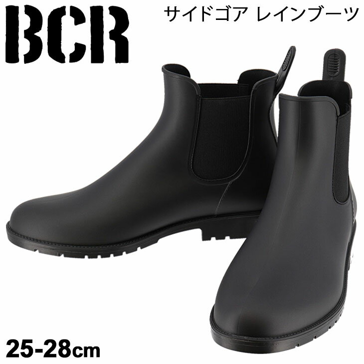 レインシューズ 防水 雨靴 メンズ ビーシーアール BCR サイドゴア レインブーツ/黒 ブラック ビジネス カジュアル ベーシック 抗菌インソール 25-28cm 男性 紳士靴 くつ/BC5179